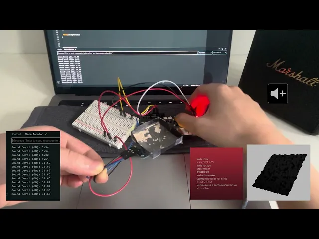 3 demonstrations of prototyping. The actual sound sensor will be placed near and distanced away from the installation, bluetooth connected to the system.